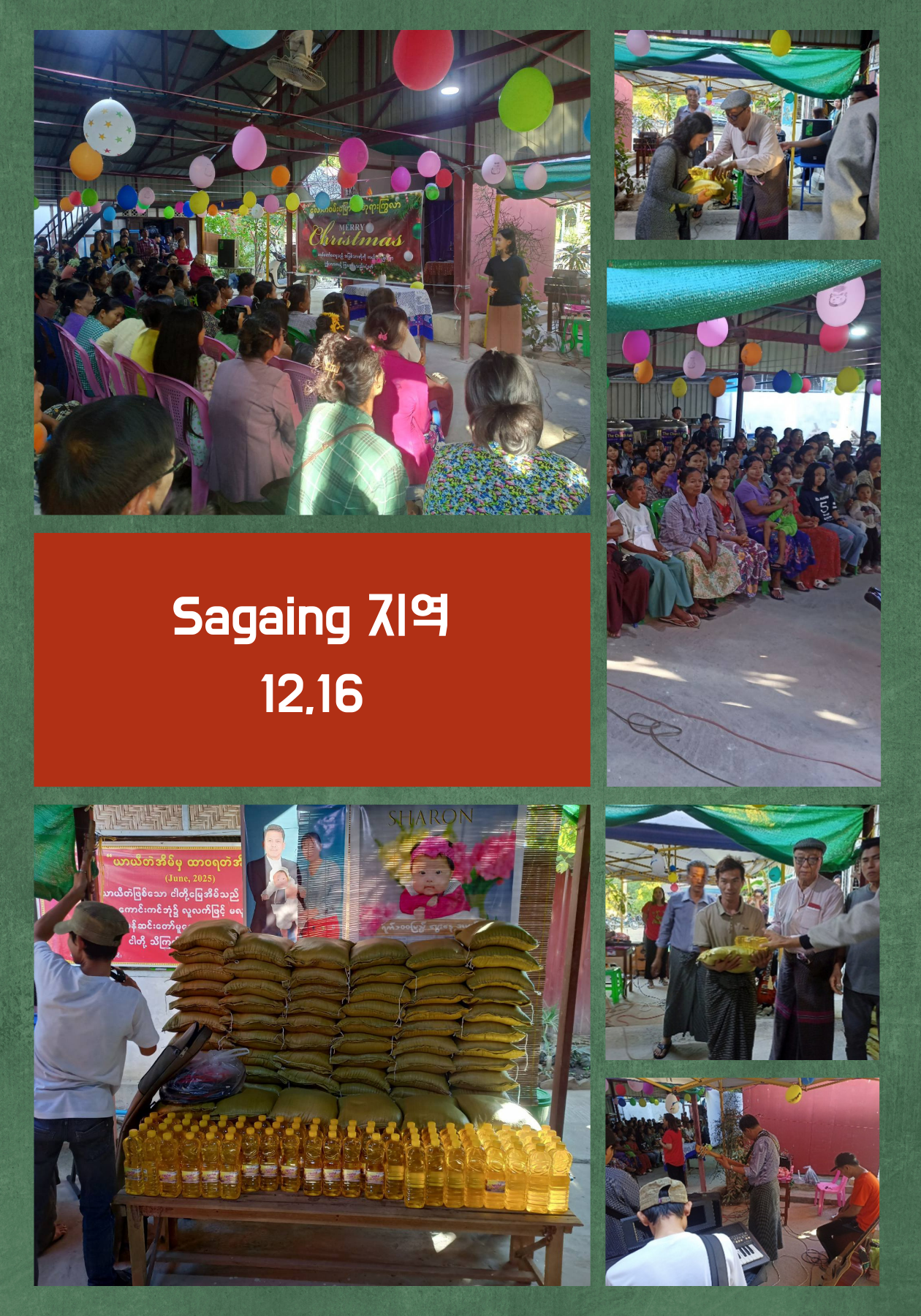 지난 12월 16일, 미얀마 북서부 사가잉 지역에서 크리스마스 지원 행사가 진행되었습니다. 사가잉은 양곤에서 차량으로 12~14시간이 소요되는 먼 곳으로, 올해 3월 28일 규모 7.7의 대지진으로 큰 피해를 입은 지역입니다. 9개월이 지난 지금도 많은 주민들이 완전히 회복되지 못한 채 어려운 생활을 이어가고 있습니다.