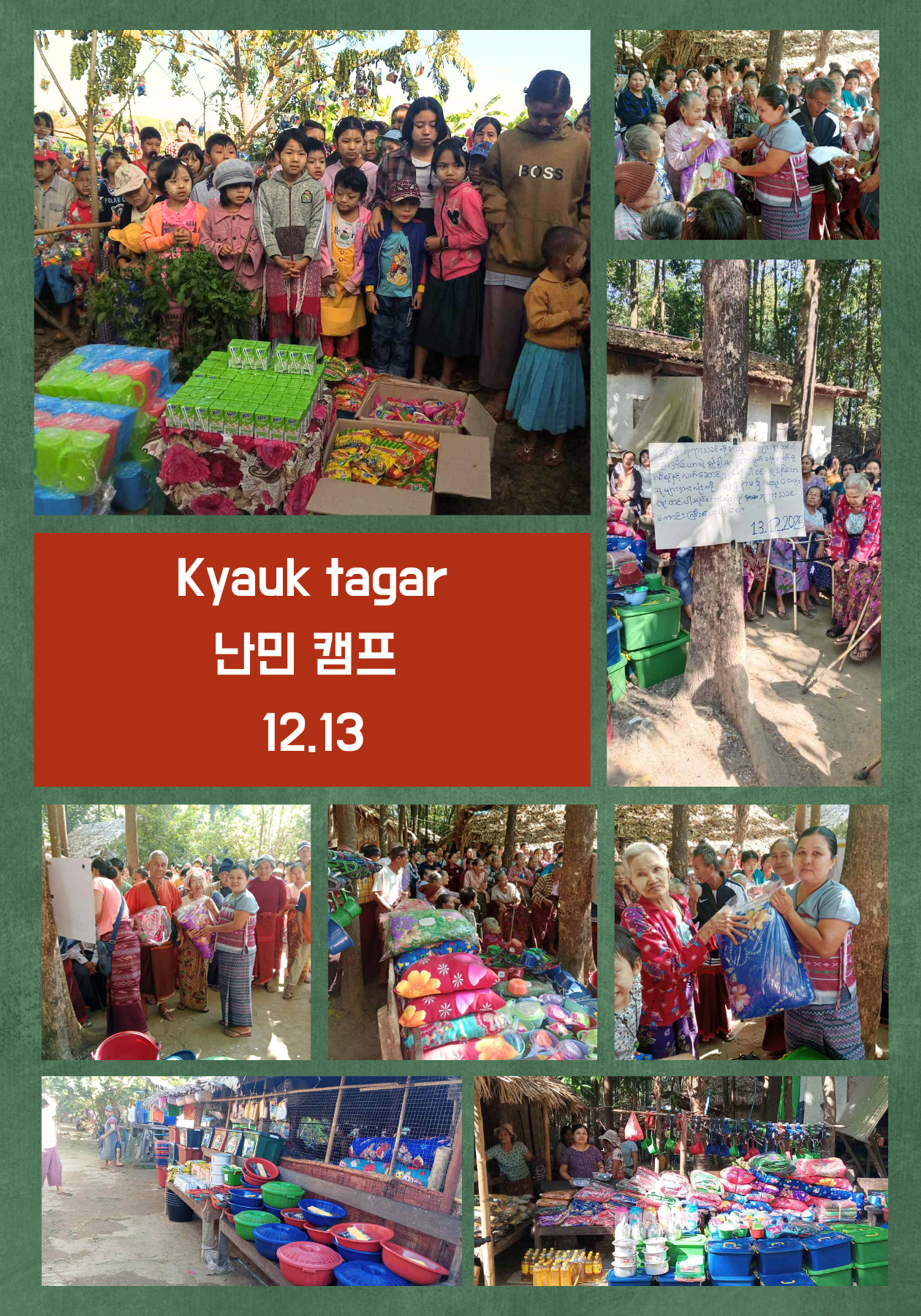 12월 초 Kyauk Tagar 난민캠프 지역의 기온이 급격히 떨어지면서 당초 계획했던 행사 일정을 앞당겨 진행했습니다. 임시 거처에서 추위를 견디고 있는 주민들에게 하루라도 빨리 도움을 전하기 위한 결정이었습니다.