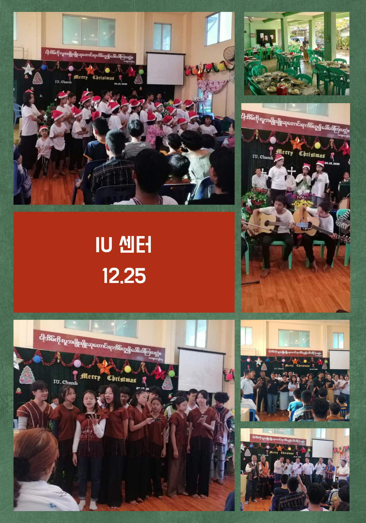 12월 25일, IU센터에서 크리스마스 행사가 열렸습니다. IU센터는 도시빈민, 전쟁과 지진으로 피해를 입은 난민, 전쟁으로 부모를 잃은 고아들을 돕는 단체입니다. 이날 행사에는 센터에서 돌보는 어려운 가정의 아이들과 공단 지역의 도시빈민, 인근 지역의 어려운 주민들까지 약 300명이 초대되었습니다.