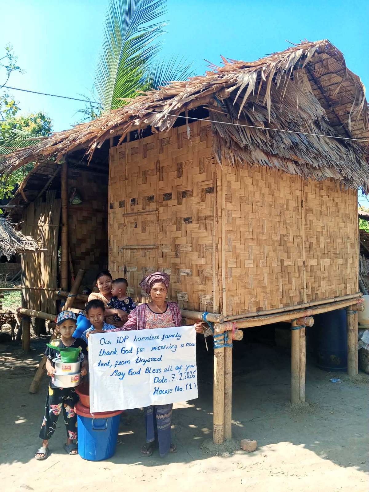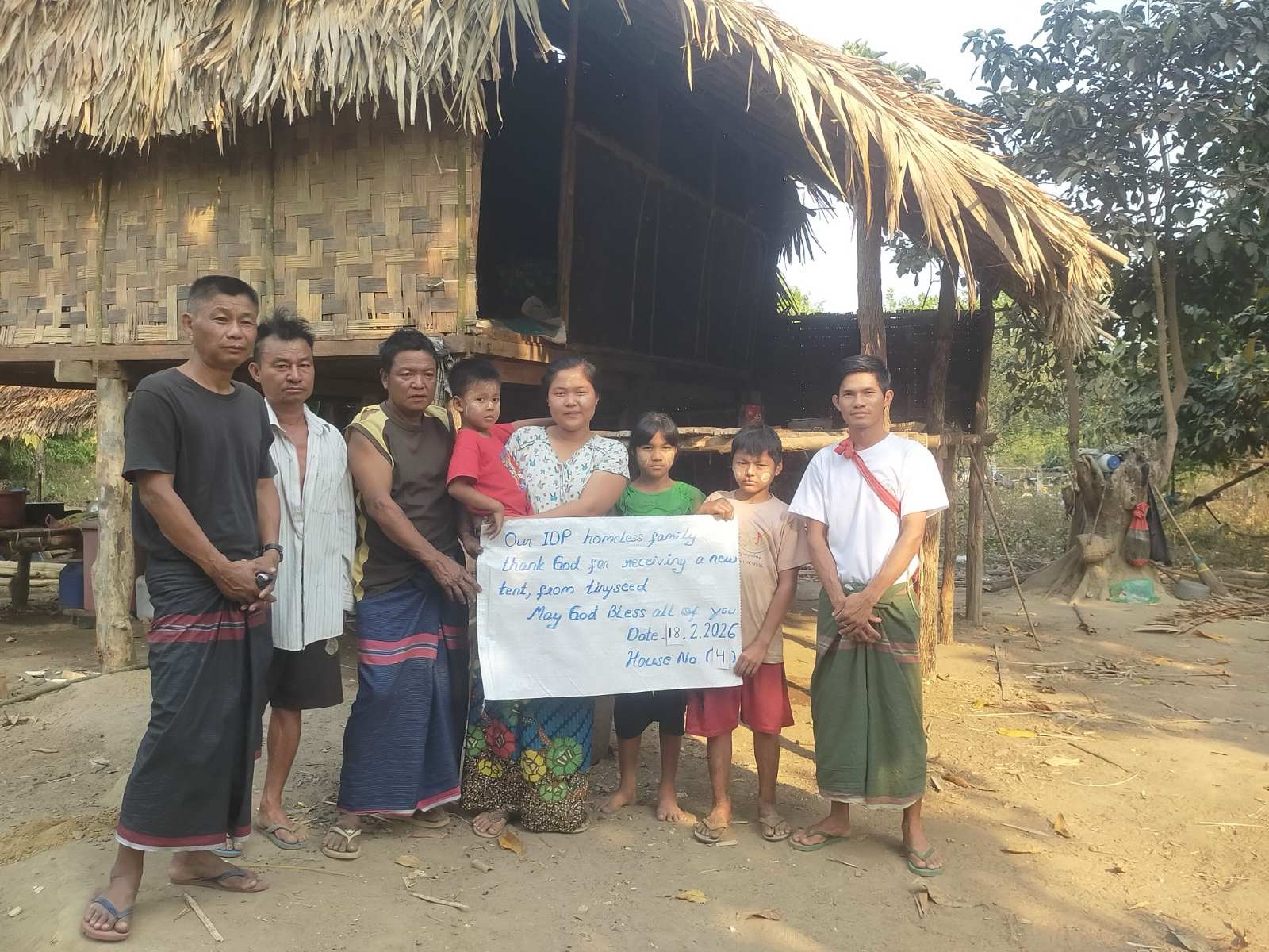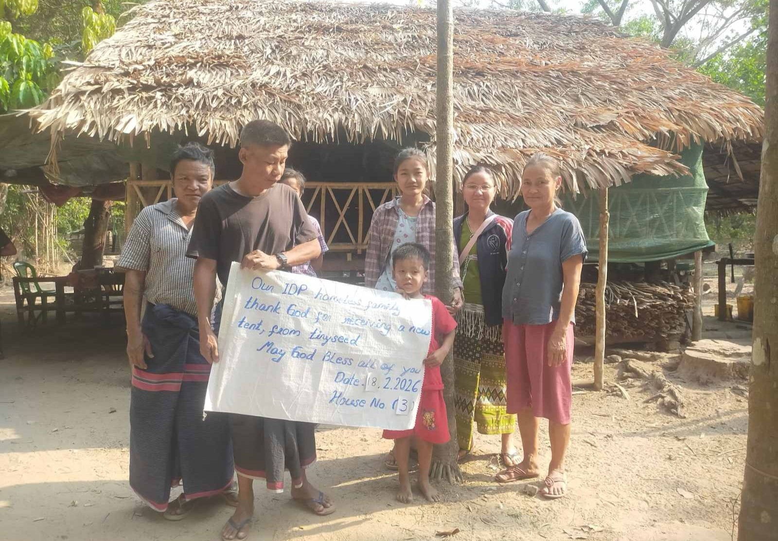 타이니씨드에서는 2025년부터 미얀마 내전으로 삶의 터전을 잃은 실향민들을 지속적으로 돕고 있습니다. 내전 피해로 인해 집을 잃은 가정들 중에서도 가장 취약한 가정, 특히 미망인 가정을 우선순위에 두고 지원하고 있습니다. 이들을 위해 대나무와 초가지붕으로 된 임시 가옥을 꾸준히 짓고 있으며, 생계를 돕기 위한 식료품과 생활용품도 정기적으로 전달하고 있습니다. 응급 의료 상황이 발생할 때에도 가능한 범위 안에서 최대한 지원하고 있습니다.