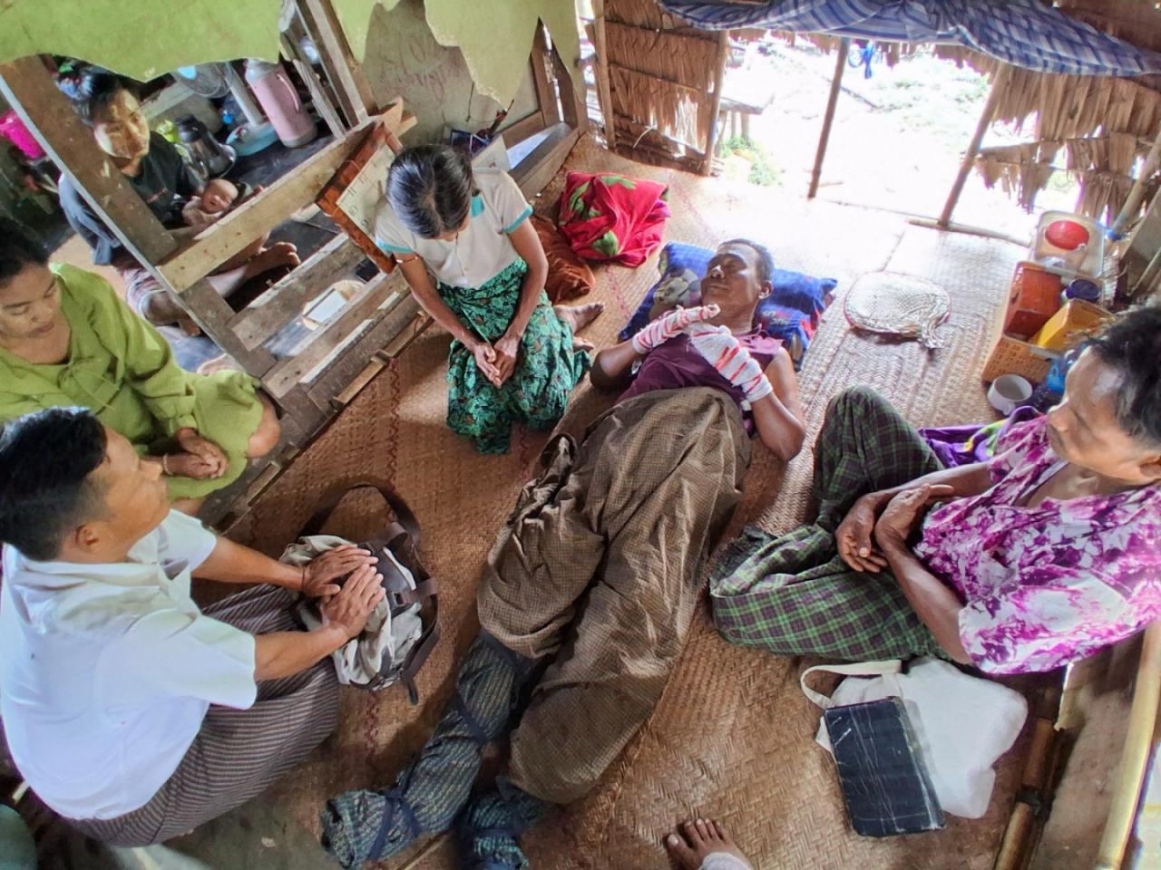이번 2월에는 대나무 가옥 5채와 우물 1개, 쌀통·물통·컵 등 필수 생활용품을 지원하였습니다. 또한 혼자 생활하고 계신 74세 우 딴 쉐 어르신께 긴급 의료 지원도 이루어졌습니다. 어르신은 심한 당뇨로 손발에 지혈이 되지 않을 만큼 상태가 위중하였으나 경제적인 어려움으로 치료를 받을 수 없는 상황이었습니다. 이에 지역 의사를 직접 불러 진료를 받을 수 있도록 지원하였습니다.
