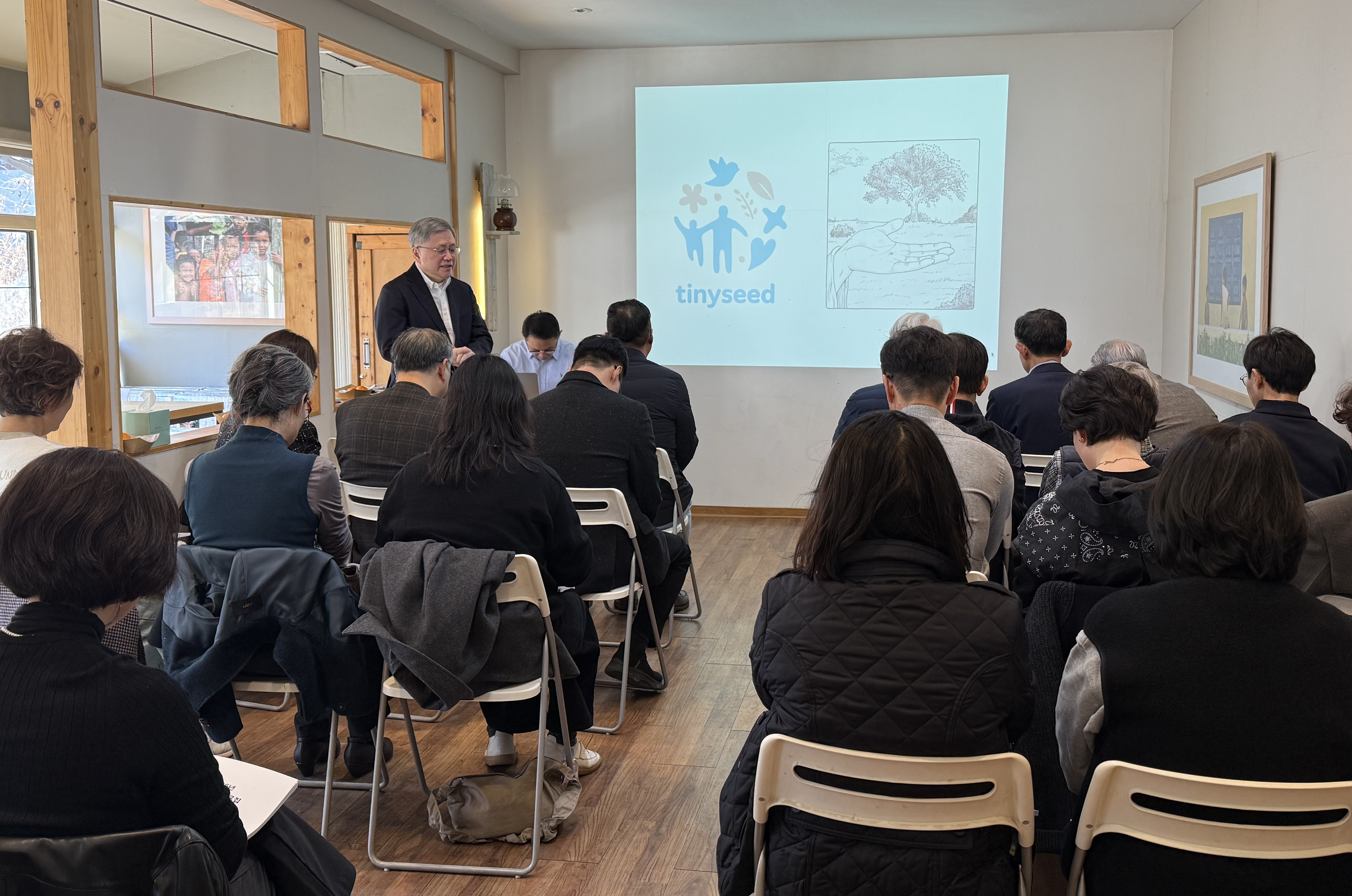 이번 총회에서는 2025년도 결산 내용을 돌아보고, 2026년도 타이니씨드가 나아갈 방향에 대해 후원자 여러분과 깊이 있는 이야기를 나누었습니다. 주요 안건으로는 황기석 이사장, 김장현 이사, 김봉진 이사, 홍순기 이사의 중임과 김현철 이사의 사임, 그리고 김현철 이사의 추천으로 이장환 이사가 신규 선임되었습니다.